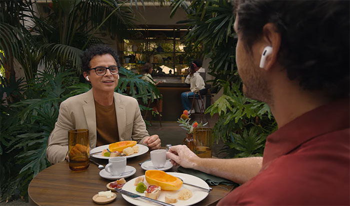 其中的实时翻译功能,相当炸场!根据苹果公司发布的视频,不同语言的人在交流时:对方讲他的语言,AirPods 捕捉到外语内容后,会通过 Apple Intelligence 实时将其翻译并播放给你听。