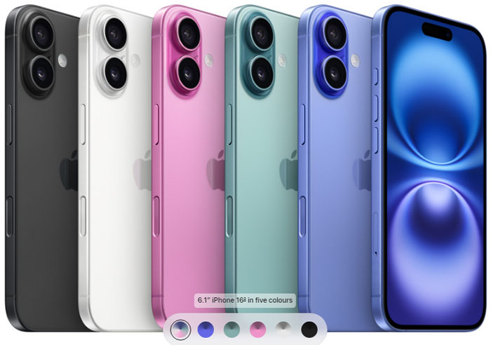 iPhone 16:128GB版5999元(CAD$1129),256GB版6999元(CAD$1279),512GB版8999元(CAD$1579)。