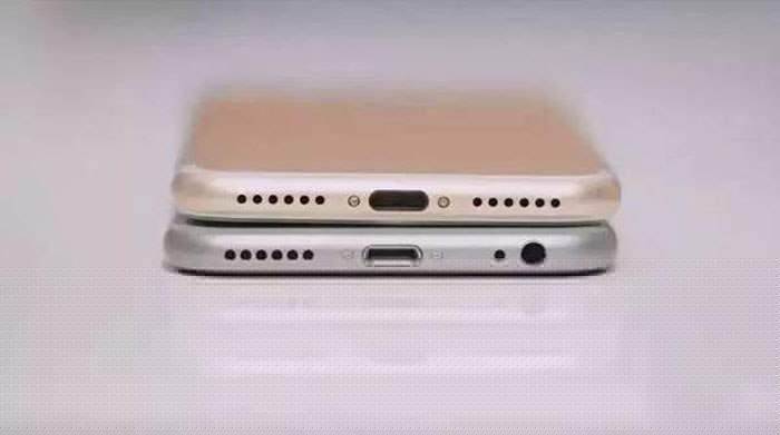 iPhone7将取消3.5mm耳机孔,就是说iPhone7将没有耳机插口!!只能通过蓝牙和充电口连接耳机,看看iPhone7和6s机身底部对比。
