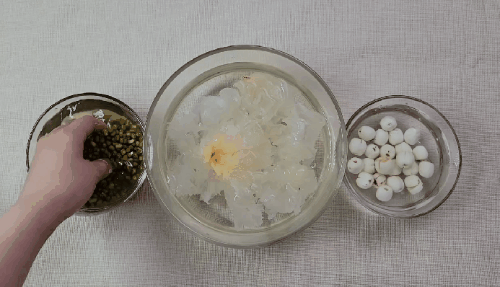 这些食材聚在一起,不争不抢,互相成就,于是就有了这道荔枝绿豆银耳羹。
