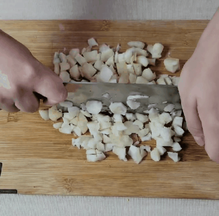 3、马蹄洗净,切小粒;鸡蛋打成蛋液;