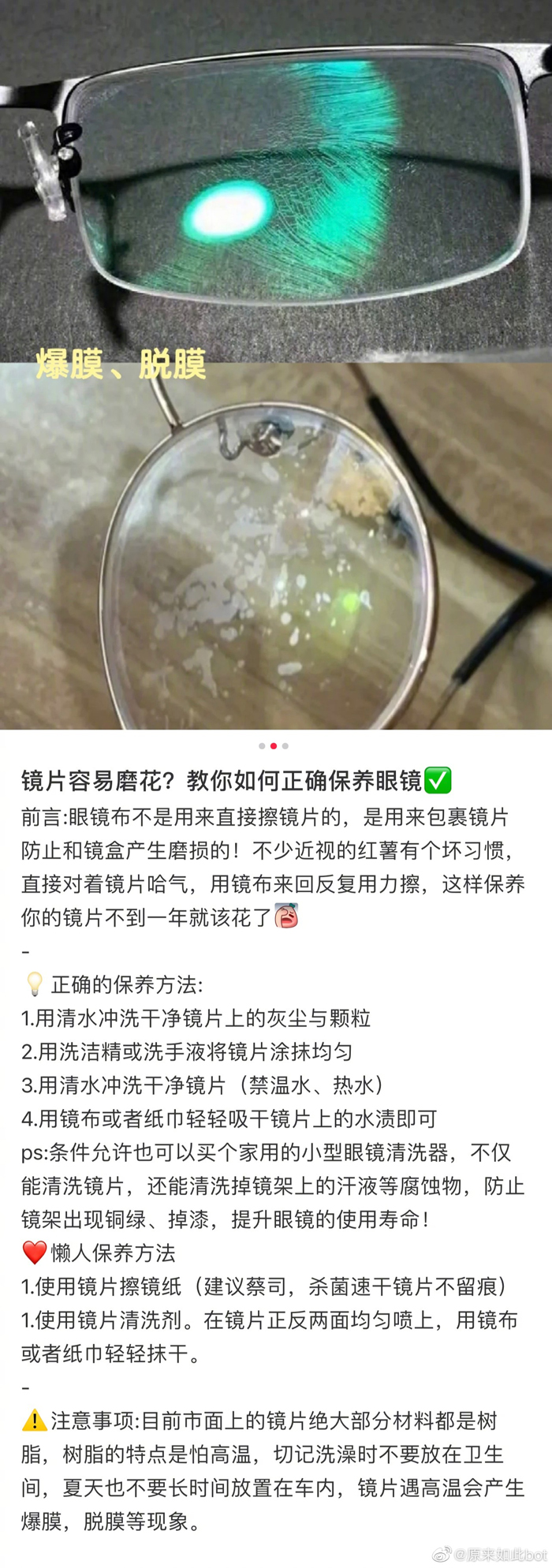 眼镜的正确保养方法 终于知道镜片上莫名其妙的划痕是怎么来的了