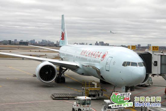 这是我们要乘坐的加航777飞机。多伦多飞北京的直航是下午2:55起飞,飞行时间13个小时,到达北京的时间是当地时间下午4点。