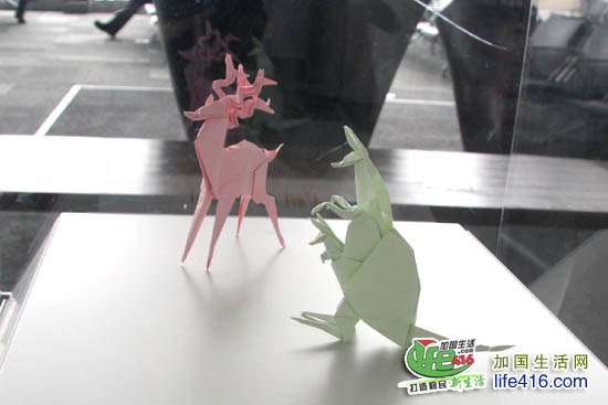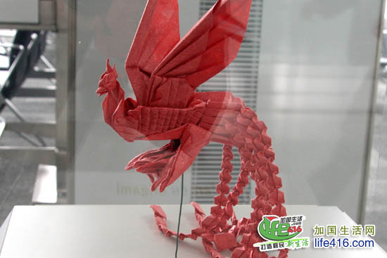 在登机大厅里还有一排艺术品展示柜,里面的展品是纸折的,顺便拍几张给大家秀秀。