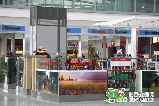 其中一个免税店门口有两个代表加拿大的“动物”守着大门:加拿大麋鹿和土拨鼠。