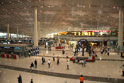 777飞机准时在北京新建的飞机场Terminal 3降落,北京的Terminal 3 机场号称全亚洲最大的机场,是在奥运期间投入使用的。