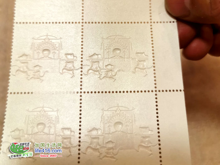 加拿大邮局发行的生肖邮票印刷都十分精美,如果你仔细看邮票的后面,都是凹进去的,说明前面图案都是凸起的,能感受到那一只只小老鼠跃然纸上