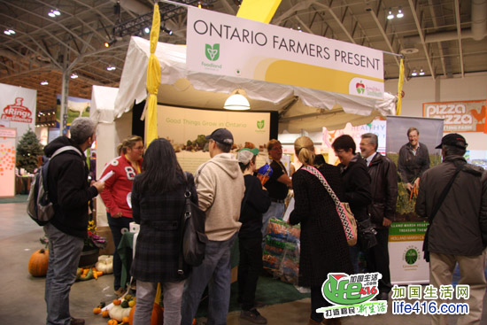 在这个展位上,农场主拿着刚采摘的胡萝卜分发给参观者,让大家尝尝安省农场种出来的胡萝卜的味道,免费给哟!