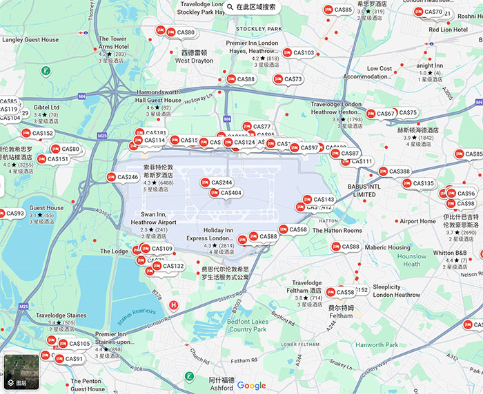 当然了,出国旅游除了要查入境要求外,自然还要制定旅游攻略。现如今的网络,与十年前又不同,AI飞速发展,已经可以帮你制定各种旅游攻略啦。但面对AI制定的旅游攻略,你还真不能100%完全相信,因为AI有时候会胡说八道,描述得有鼻子有眼儿的,其实根本没有那回事儿,所以你必须要再去审核一下,除了要搜索各种官方网站外,还可以利用Google地图的评论功能。是的,现如今的Google地图也是功能强大,除了有地图指路功能还有店铺评论、价格比较功能。地图指路功能告诉你在哪个城市坐哪条地铁线;店铺评论功能则有亿万个用户消费后的评价,这个店铺小到各种网红店铺大到各大酒店;价格比较功能则会列出某个区域酒店的价格,比如你在google地图中输入“uk london heathrow hotel”,google立刻显示heathrow机场附近酒店的价格比较,对比价格兼看评论就能帮助你决定到哪家酒店住宿更合算更方便。