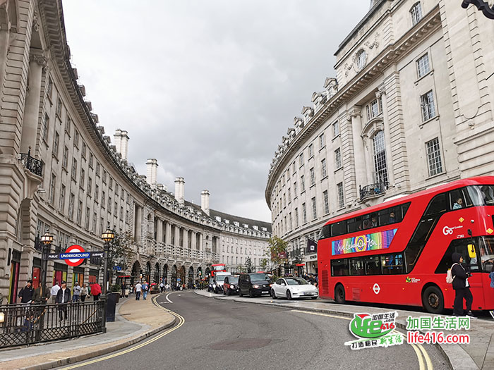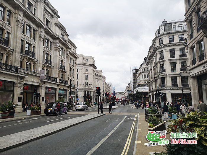 这就是著名购物街摄政街(Regent Street)与Piccadilly Circus交界的一个路口,沿着这条路走,就能找到全世界著名品牌的各个店铺