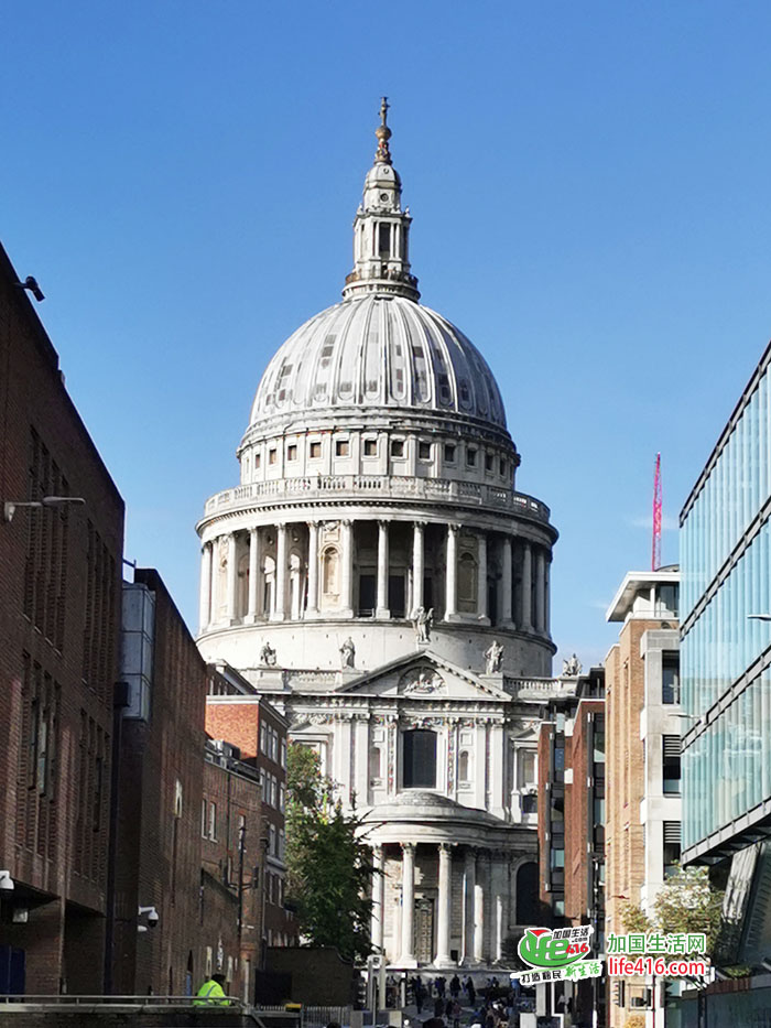 站在千禧桥(Millennium Bridge)看圣保罗大教堂(St Paul's Cathedral),感觉教堂特别雄伟。圣保罗大教堂是英国圣公会伦敦教区的主教座堂,巴洛克建筑的代表,以其壮观的圆顶而闻名,现存建筑建于17世纪。