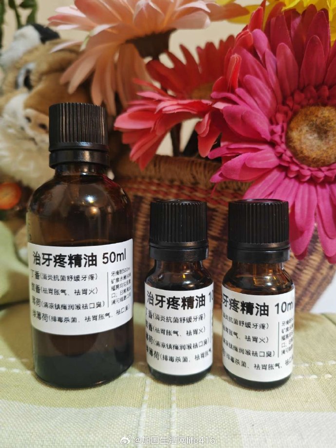这个牙疼精油的全套配制50ml:丁香、茴香、薄荷和绿薄荷。
