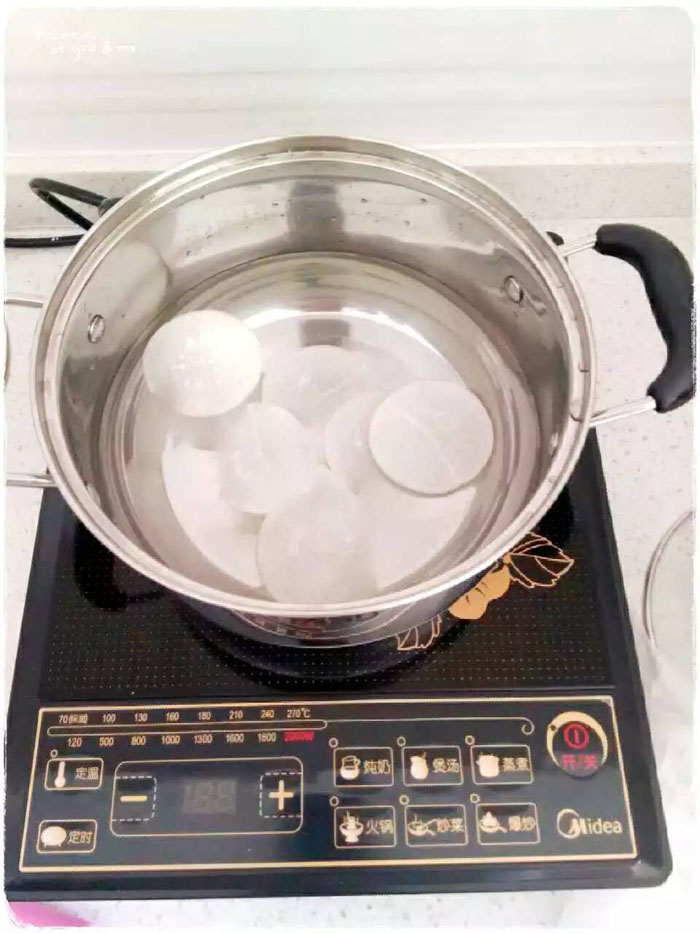 2、放入小锅里面,加水,淹没萝卜片,然后点火烧开后,再改用小火煮五分钟即可。