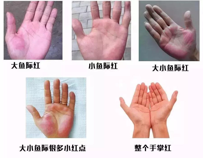 大小鱼际红:易出现动脉硬化、脂肪肝。