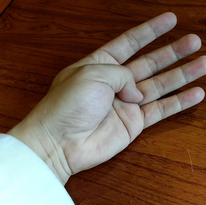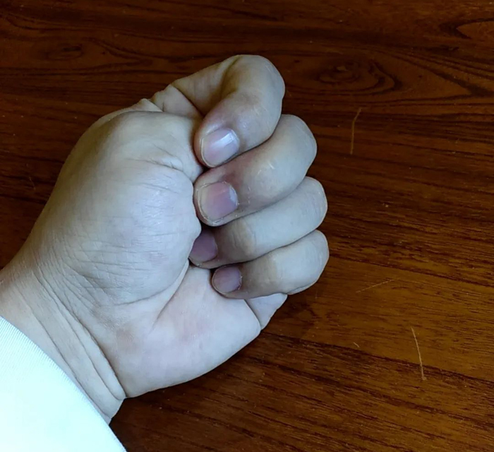 大家做这个手势时,也不用太拘泥于动作,自然握住时拇指的位置基本就是无名指的指跟处。