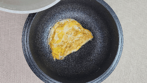 2、继续开小火,用锅中底油煎鸡蛋,煎至两面金黄即可;