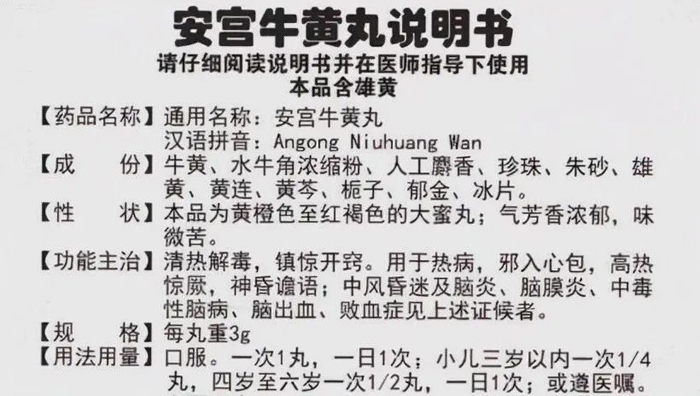 那我们看看牛黄丸的说明书,也就是开始我问我同学的那句话,