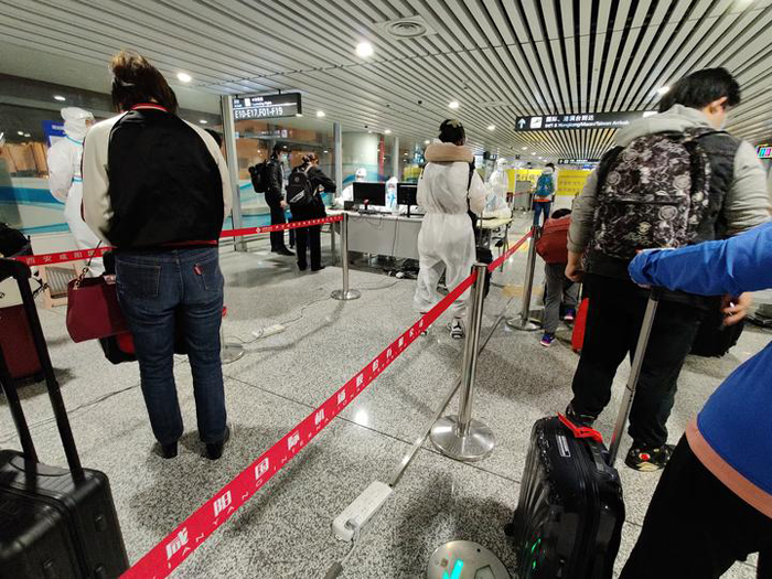 5月30日(多伦多时间)17点20起飞,31日19点(北京时间)落地咸阳机场,约13个半小时。这是我们第一次乘坐国内航班回国,感到很亲切,此前多次往返都是加航。机上没有了以往的航餐,只提供面包饼干鸡蛋瓶装水。做到了少吃少喝少走动,少上厕所少说话,随时洗手消毒(最小瓶免洗液可以带上机)。飞机尾部留出了三排空座位,以备隔离人员使用,期间测体温一次。落地后经过一系列验证、询问、登记、鼻、咽拭子检测,顺利通关。