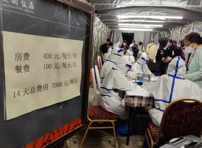 隔离费用自理,单间每人7000元(包括每天100元伙食费)。按照要求,夫妻也要分开单独居住,我提出了合住申请,理由是我身体不好,给他们出示了随身药物。这样一来我们总共缴费8400元,省了5600元,心中暗喜。
