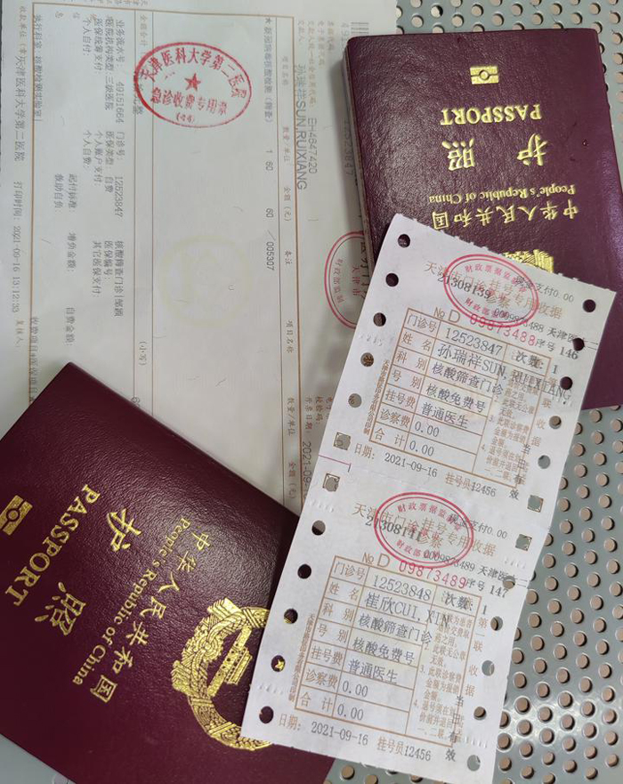 启程前的一件大事就是核酸检测。拨打天津12345政务服务便民热线,服务不错,了解到天津共有四家涉外检测医院。几位亲历者和了解情况的朋友也详细介绍了检测程序。为稳妥起见,那天我们冒雨到离家最近的医大二院“踩点”熟悉路线,做到了心中有数。