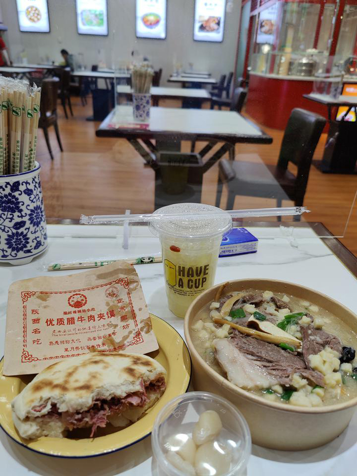 故地重游,格外亲切。在候机大厅内品尝陕西特色肉夹馍、羊肉泡,味道不错。餐厅每人独坐,有玻璃挡板隔断,又想起了三个月前在这里隔离的情景。15点开始行李排队,核验72小时内核酸报告后取得机票。16:30开始托运行李,因箱子里有纪念币若干,呈圆柱状疑似电池,被叫去重新开箱查验。免税店内空无一人,候机大厅也是异常冷清,国际航空业遭到重创。19:05准时起飞,目的地多伦多皮尔森国际机场。