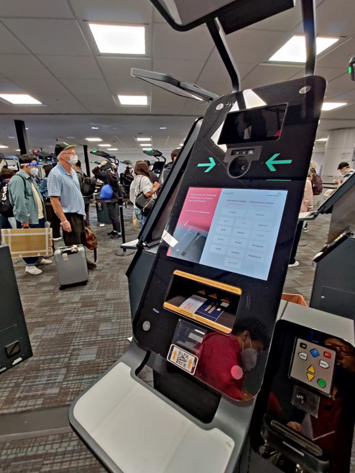 走进通关大厅,眼前出现一排排自助申报设备(疫情前没有),先选择语言(有多种语言供选择,很便利),扫描个人证件后,出现一系列提问,包括是否携带动物制品、植物种子等,用是否回答即可。疫情前这个程序都是在飞机上纸质填写。