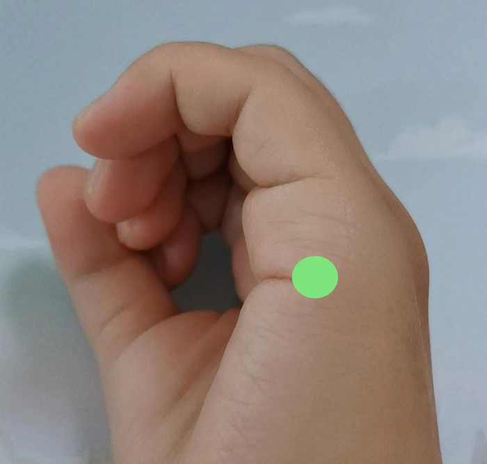 后溪穴,在手掌尺侧(尺侧是指小手指一侧,桡侧指大拇指一侧),微握拳,当小指本节(第 5 掌指关节)后的远侧掌横纹头赤白肉际处。