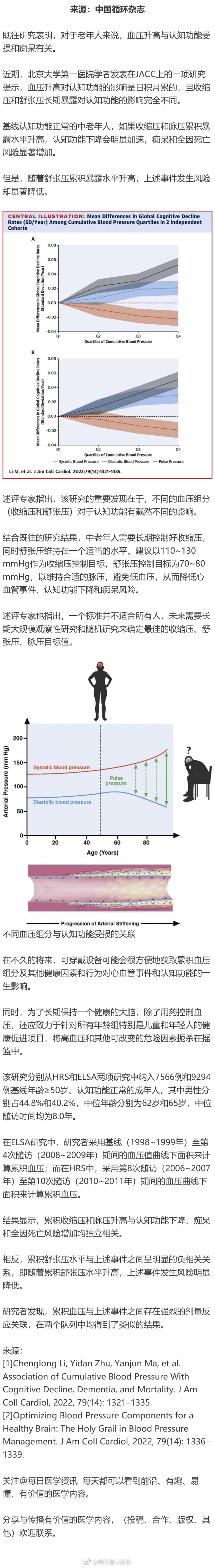 近期,北京大学第一医院学者发表在JACC上的一项研究提示,血压升高对认知功能的影响是日积月累的,且收缩压和舒张压长期暴露对认知功能的影响完全不同。