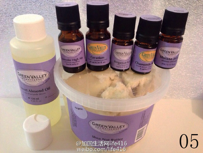 “受了这位妈妈的启发,小编之后配的祛湿疹霜(图5、图6)就是全部采用乳木果和甜杏仁油为基础底油,加入薰衣草、德国洋甘菊、佛手柑、天竺葵和香蜂草精油配成的。