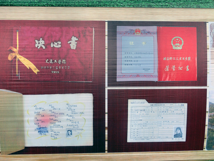 照片墙的中间,有一幅刊登着六种校徽的照片格外醒目,其中白底红字的“大连工学院”校徽不正是当年我们所佩戴的?记得这枚校徽我和老伴一直收藏着,但随着年龄的老化,越是“藏”得深的东西,也越是忘得快、找不着,现在也不知道它“躲”在了哪个盒子或哪个抽屉里。此外,墙上还展有许多当年学生和老师使用过的笔记本、学生证、工作证、荣誉证书、决心书等物品照片,可惜没看到当年我们使用过的饭票,那一张票一勺饭一勺菜的“套菜”模式,以及大家都把饭碗装在布袋挂着食堂架上的情景(当年大工之一景)真是记忆深刻,如果哪位老同学至今还收藏着这枚珍贵校徽或其它类似的纪念品,也请在微信中晒上一晒,让青春的回忆再现,想必也是母校於当日上午举办“返校日”(可惜我未能到场)之初衷,是挺有意义的一件事情。