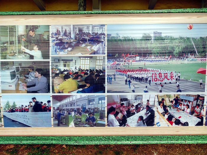 在上述绿草地东侧,有一溜近百米长的照片墙,墙之两侧写有“改革开放四十年照片墙—校友返校日”标题,墙上贴满了由母校档案馆提供的改革开放四十年以来的部分系、部分届的毕业班合影照片,自然没有我们6511的合影照片。不过,观摩这些黑白照片或初期彩照也有一番情趣,从当年这些毕业生的穿戴仿佛也看到当年我们衣衫模样,对比今日之在校学友的穿戴水平真是无法比拟的。