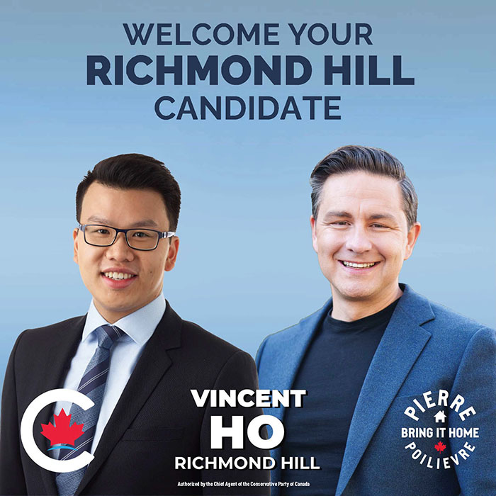 在大多伦多地区华裔移民聚居的烈治文山南部( Richmond Hill South )选区,在本届联邦大选出现了一位踔厉奋发的华裔候选人何诺轩( Vincent Ho ),代表联邦保守党出战。