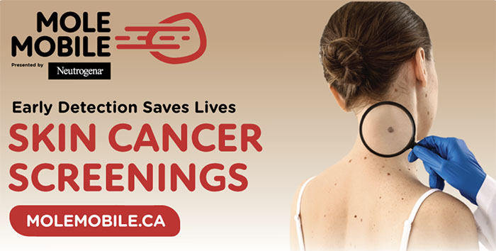 【加国生活网】由Melanoma Canada发起的“Mole Mobile”流动皮肤癌筛查车将于本周末停靠Vaughan和Scarborough,为大多地区的市民提供早期皮肤癌筛查和预防宣传服务。Melanoma Canada加拿大黑色素瘤协会通过提供有用的资源和教育为患有黑色素瘤和皮肤癌的加拿大人提供服务,该机构认为皮肤癌是加拿大最常见的癌症,但若能及早发现,也最容易治疗。“Mole Mobile”流动皮肤癌筛查车的目标就是通过提供生命攸关的筛查,填补这一医疗缺口。
