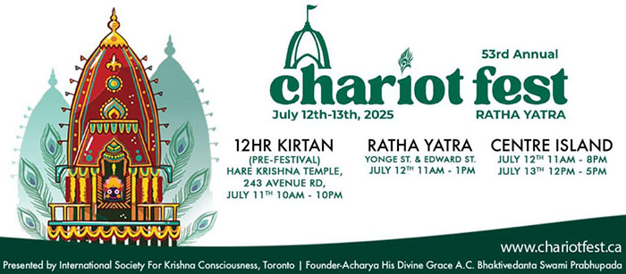 【加国生活网】这个周末,印度社区最大的夏日活动—53rd Annual Festival of India第53届印度节(以前又称Ratha Yatra节)将在Yonge St. & Edward St. 举行盛大的开幕式及游行,各种彩车以及上万市民将会把Yonge街变得热闹非凡,而节日的主体活动将在中央岛Centre Island 举行。今年的活动除了有在Yonge街举行的游行外,还有在12HR Kirtan和在Centre Island举行的素食美食节和大型的户外瑜珈活动等,想感受印度文化的朋友千万不要错过了。具体活动的时间安排请到其官方网站查询。