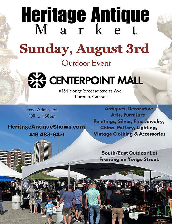 【加国生活网】一年一度大型户外帐篷下的古董市场The Heritage Antique Market将本周日盛大开幕,届时来自多伦多、蒙特利尔、渥太华、伦敦、温莎、Chatham、Port Hope, Cobourg等地的优秀古董和复古经销商将云集于此,带来让你意想不到的好东西,想要淘宝的朋友千万不要错过,风雨无阻,免费入场。