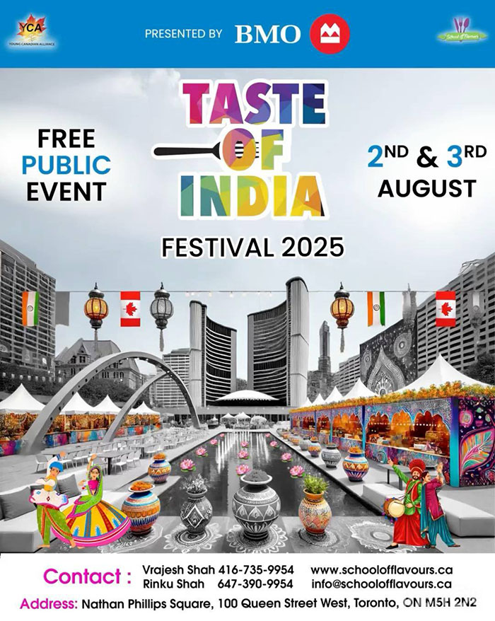 【加国生活网】Taste Of India Festival 2025 印度美食节 将于这个Civic Holiday长周末在多伦多市府门前的Nathan Phillip广场举行,免费对公众开放。印度美食节将通过艺术、音乐、舞蹈、娱乐和美食的方式将多伦多多元文化的社区联系在一起,让加拿大的所有不同种族都可以参与并享受这个节日。届时,两天内将会超过15万人次参与,现场将会有100多家餐厅和食品品牌展示超过900种令人垂涎的菜肴,还有750多位艺术家在舞台表演。此外,现场还有麦克风歌唱挑战、饮食比赛、健身挑战、舞蹈和音乐挑战、混搭以及更多活动。