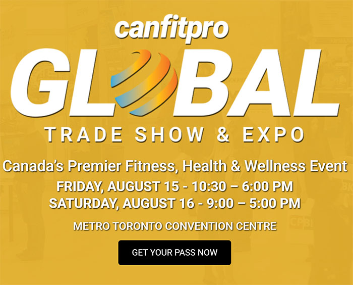 【加国生活网】由Canfitpro 主办的加拿大最大健身与健康展销会Canfitpro Global Trade Show & Expo将于本周末在Metro Toronto Convention Centre 举行,今年是第32届。届时,来自全加拿大的200多家参展商将会展出最新的和健身与健康有关的器材、服务等相关产品。此外,现场还将举行和健身与健康有关的讲座、比赛等, 喜欢健身的朋友一定不要错过这个展销会。票价:$291(包括当天的健身课程),如果只是参加展览可点击这里申请免费门票。