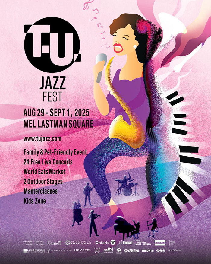 【加国生活网】喜欢爵士乐的朋友们注意了,T.U. Jazz Fest 2025 爵士音乐节将于这个长周末在Mel Lastman Square举行,今年是第11届,而且还有夜市!届时,该音乐节除产将展示一流的爵士乐表演,还有World Eats Market,有60多个美食摊贩和儿童游戏区,主办方欢迎市民到体验现场爵士音乐的魔力,免费入场。