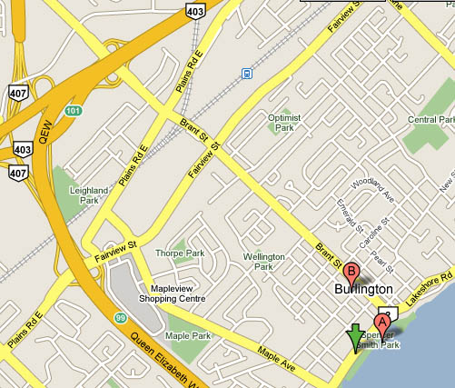 地址:Burlington 小镇市中心湖边公园Spencer Smith Park,在QEW的101出口下,沿Brant St.一直向南开至湖边Lakeshore Rd.即是。点击查看Google地图
