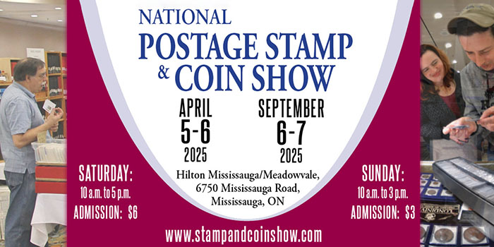 【加国生活网】由 Canadian Stamp Dealers' Association主办的National Postage Stamp Show & Coin Show国家邮票和钱币展将于本周末举行。如果您是集邮迷和钱币迷的话,那么千万不要错过这个展会。届时,来自加拿大、英国、美国的一些专业机构和收藏家会汇聚一堂,除了会带来丰富的展品,还会举办一系列讲座以及抽奖活动。票价:星期六$6、星期日$3。