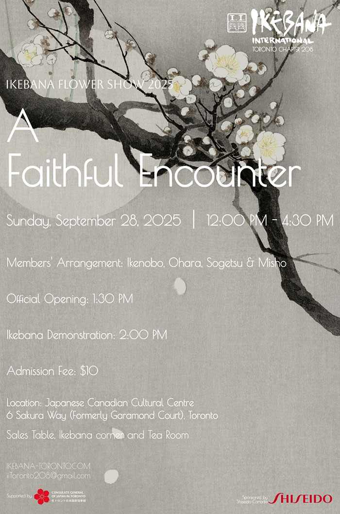 【加国生活网】由多伦多日式国际花道协会(Ikebana International Toronto Chapter)主办的“2025年度花卉及花艺展览” 将于本周日9月28日在多伦多日本文化会馆进行。本届花展主题定为““一次忠诚的邂逅”,旨在反映日式花道的学习精神。展出作品包括日本现今的三大流派: 池纺、草月流和小原流, 并有以上各流派的大师即场示范,欢迎喜欢花艺和日式花道人士到场参观。票价:$10