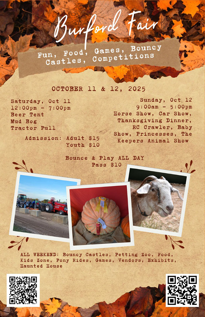 【加国生活网】这个感恩节长周末,安省第三个举行秋季节的城镇,同样也是位于多伦多南部的Burford小镇,也将于这个感恩节长周末举行小镇秋季节,今年是第163届,历时四天。届时,Burford小镇秋季节将举办汽车展、周末RV Camping、马展、音乐会、选美、冲撞赛车(Demo Derby)以及一系列适合全家老少参与的活动。票价:成人$15、5至17岁$10、4岁以下儿童免费。