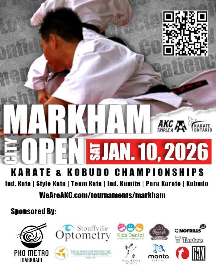 【加国生活网】The Markham City Open 2026 将于本周六在万锦泛美中心(Markham Pan Am Centre)举行,这是一个由安大略空手道协会主办的面向各年龄段和各水平运动员的空手道比赛,也是一个筹款赛事,所有观众费100%捐赠给空手道队,欢迎感兴趣的朋友前往观看并慷慨捐赠。