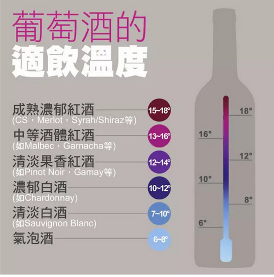 先把酒侍到最佳温度,参考下图: