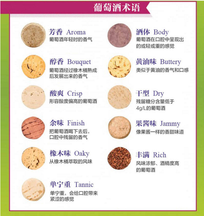 下面再介绍一些关于葡萄酒品鉴的常见术语: