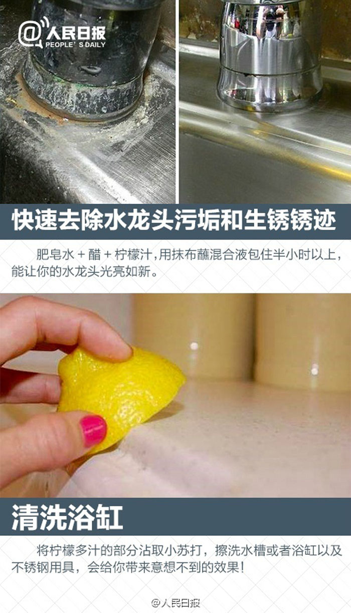 厨房和卫生间总是家里最难清洁的地方,想让厨房和卫生间变回最初干净纯白的样子?抽油烟机脏:温水+食用碱;锅底黑:小苏打+保鲜膜;花洒堵:白醋+柠檬;浴室砖墙黄:洁厕液……最实用的清洁小妙招↓↓油、脏、臭,通通解决!趁假期,动手打扫吧!