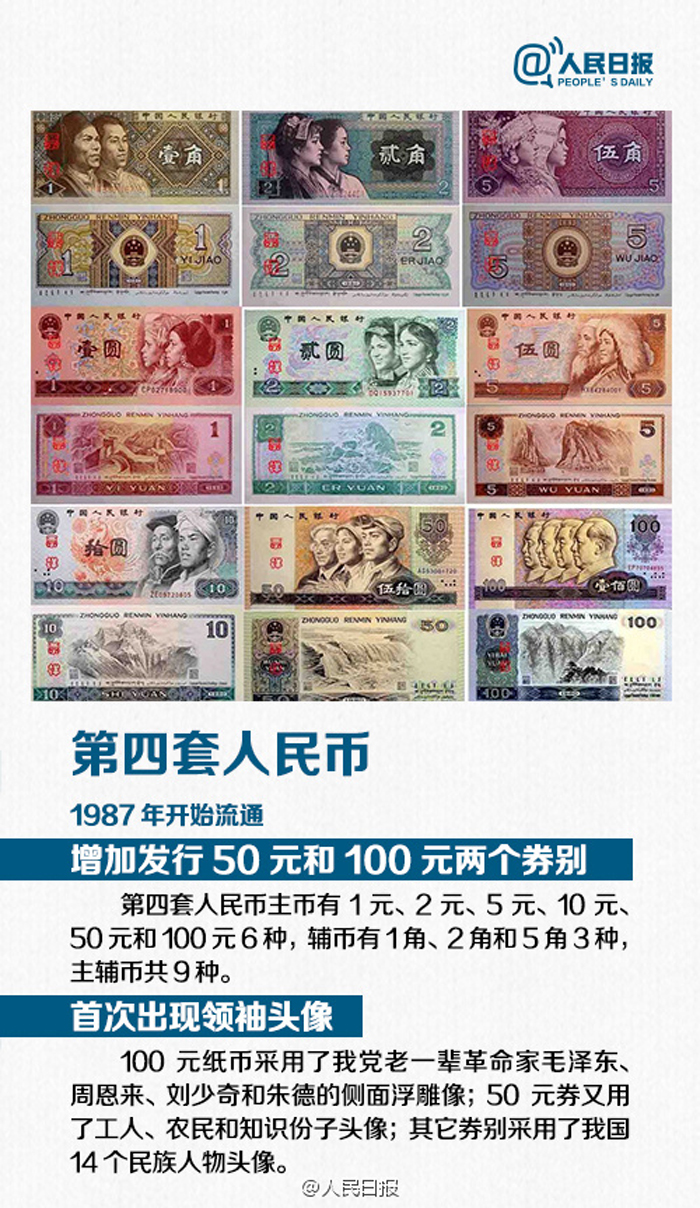 央行日前通知,11月起第四套人民币“菊花1角”硬币将只收不付,逐渐退出流通。你知道吗,从1948年第一版人民币诞生,人民币如今已走过68个年头,共发行5套。人民币历史上最大面额是多少?你见过3元纸币吗……人民币进化史,你见过最早是哪套?