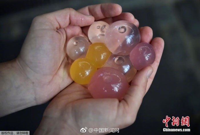 近年来,3名在伦敦学习工业设计的学生,受分子美食启发,将水或饮料盛放在双层薄膜中,制作出了可食用水包"Ooho"。据悉,"Ooho"制作简单、环保、可降解,能有效减少塑料瓶的使用,保护环境。