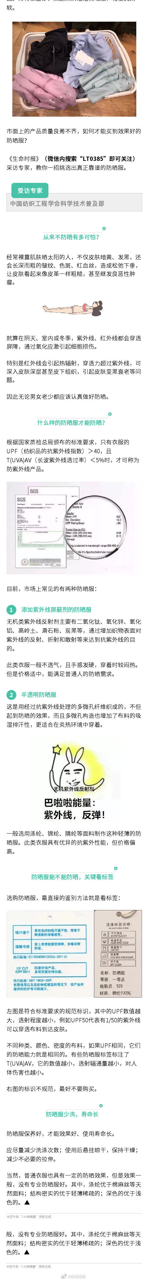 夏天看着那火辣辣的太阳,是不是都不想出门了呢?准备一件防晒服多少可以抵挡一些阳光,到底什么样的防晒服才具有防晒功能呢?市面上的产品质量良莠不齐,如何才能买到效果好的防晒服?《生命时报》采访专家,教你一招挑选出真正靠谱的防晒服。