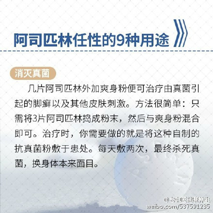 阿司匹林除了可以治疗头痛以外,在生活中也有让你意想不到的妙用,去头屑、除老茧、治疗粉刺……都不在话下!阿司匹林这么强大,还有哪些用处是你不知道的?